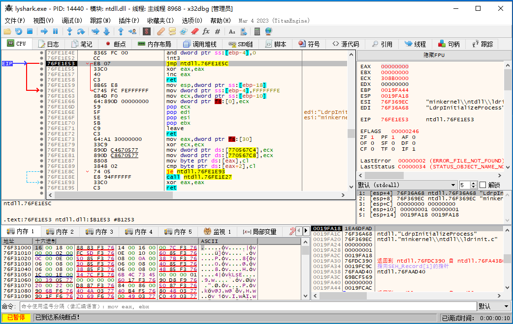 这里增加一个知识点,关于动态反汇编调试与静态反汇编调试的区别: