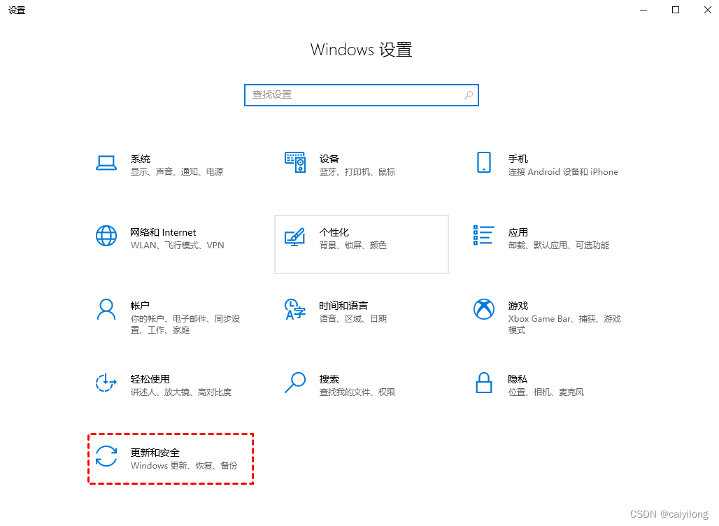 1. 按“Windows + i ” 键,打开Windows设置,再单击“更新和安全”。