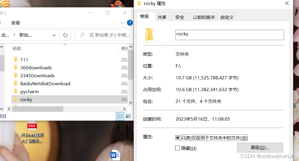对于上图的rocky文件夹,通过右键属性我们可以知道它的一些信息,比如文件名、创建时间、大小等数据,这种数据便是元数据,元数据是文件的附加属性。而用户数据则是文件数据块,数据块是保存文件实际内容的地方。