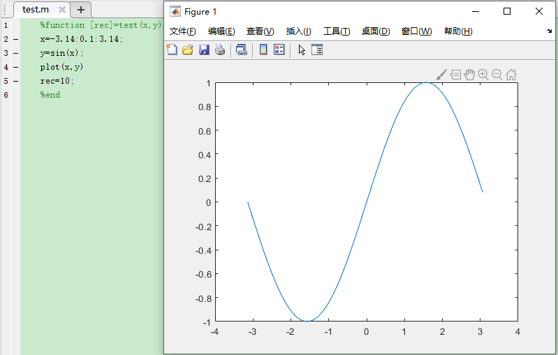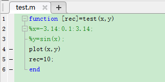 2. 确认编写无误后再保存:编写好后,注释掉第一句和最后一句,去掉第二三行的注释。(编写好后最好是先验证MATLAB程序是否能正常运行,否则在MFC中运行到此函数后会停止运行或者显示不出想要的结果)