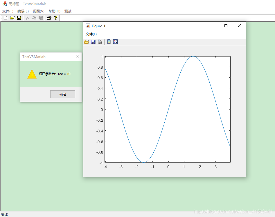 结果如图:返回参数正确,曲线正确(点击下图中确定后,会结束调用,图像会消失,如果不想图片自动消失,可将上面程序中最后一行注释掉://drawTerminate();)