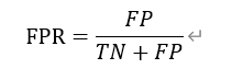 即所有的负例中,被模型分成正例的概率。表达式如下: