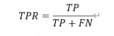 即所有的正例中,被模型分成正例的概率。其表达式与召回率一样: