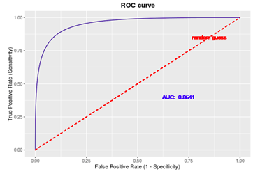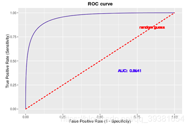 ROC曲线能很容易的查出任意阈值对学习器的泛化性能影响,ROC曲线越靠近左上角,模型的准确性就越高。最靠近左上角的ROC曲线上的点是分类错误最少的最好阈值,其假正例和假反例总数最少。如下图所示: