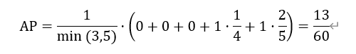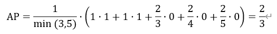 Step2:对一个有序的列表,计算AP的时候要先求出每个位置上的precision,然后对所有的位置的precision再取平均。如果该位置的文档是不相关的则该位置 precision取0.