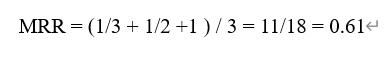 即第一个结果匹配,分数为1,第二个匹配分数为0.5,第n个匹配分数为1/n,如果没有匹配的句子分数为0。最终的分数为所有得分之和。举例来说: