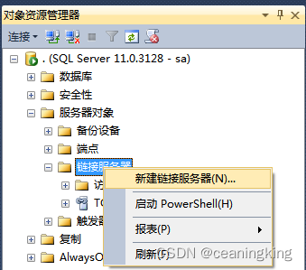 1. 打开SQL 2012,按图选择【新建链接服务器】