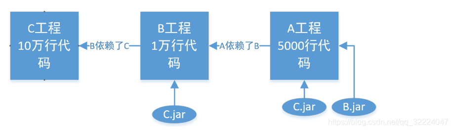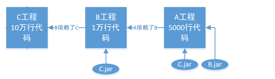 我们要知道一个依赖的jar包,其本质也是一个java工程,所以在开发这个java工程时也会用到其他的jar包资源,在maven中,这种相互的依赖关系是可以进行传递的.比如A工程开发需要B工程的jar包支持,而B工程又在开发时使用了C工程jar包,当A工程依赖B工程时,也会同样把C工程依赖使用.
