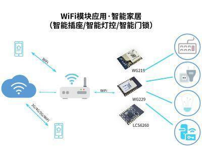 数据传输、智能控制应用:针对万物互联时代的数据传输、智能控制、对接云平台的服务需求,SKYLAB研发推出的UART WiFi模块WG219/WG229/LSC6260/WG231,内置无线网络协议IEEE802.11协议栈以及TCP/IP协议栈,能够实现用户串口或TTL电平数据到无线网络之间的转换。满足物联网领域内智能家居,智能照明、智慧工厂和智慧医疗中的数据传输和智能控制需求;