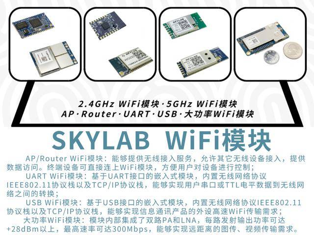 AP路由,4G路由,家庭网关,中继WiFi应用:针对路由器市场、家庭网关的无线WiFi、4G转WiFi服务需求,SKYLAB研发推出的AP/Router WiFi模块SKW78/SKW92/SKW93A/SKW99/SKW100/SKW103,能够提供无线接入服务,允许其它无线设备接入,提供数据访问。满足物联网领域中智能楼宇、智慧工厂和个人消费的无线WiFi服务需求;