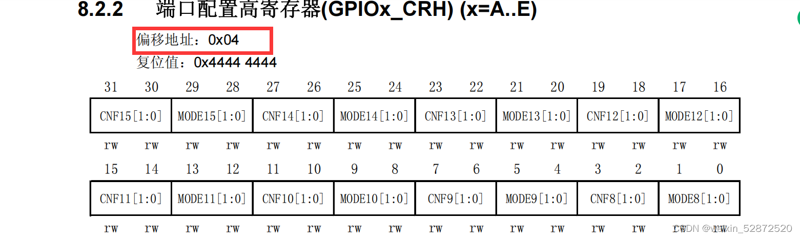 - C13,13属于高位,找到端口配置高寄存器的偏移地址。0x04