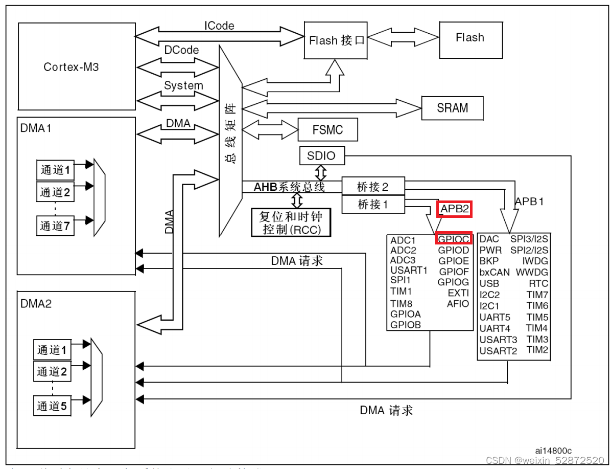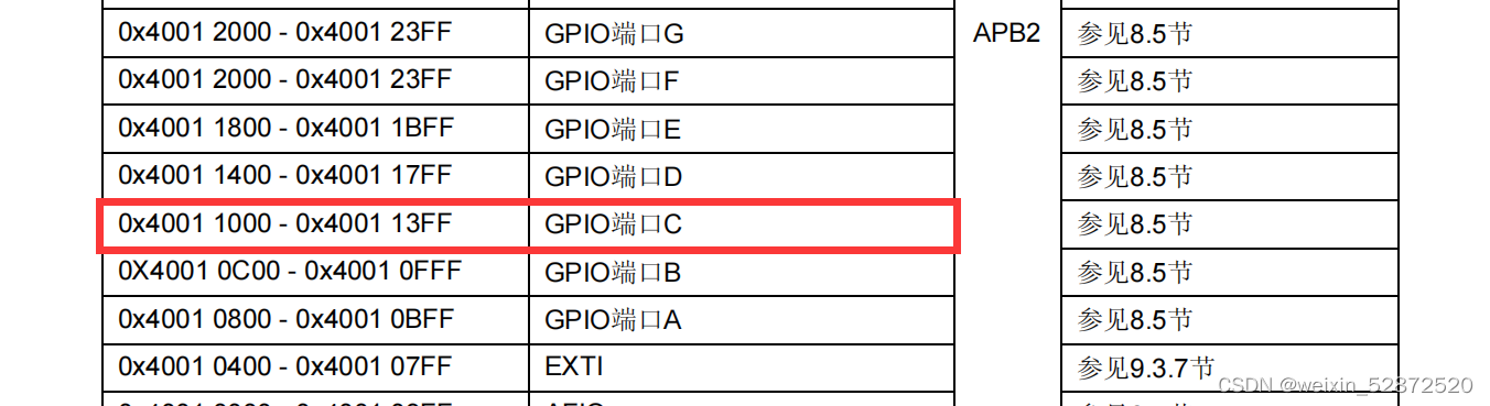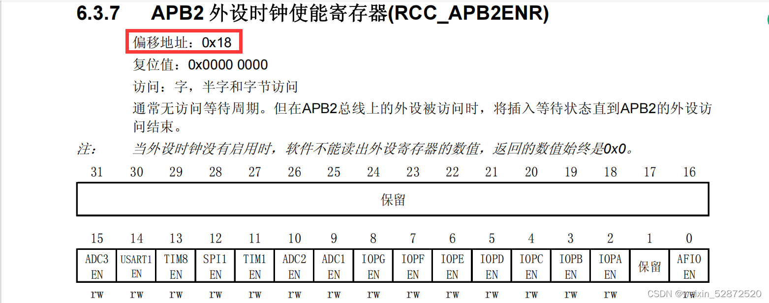 - 记录APB2外设时钟使能寄存器(RCC_APB2ENR)的偏移地址 0x18。