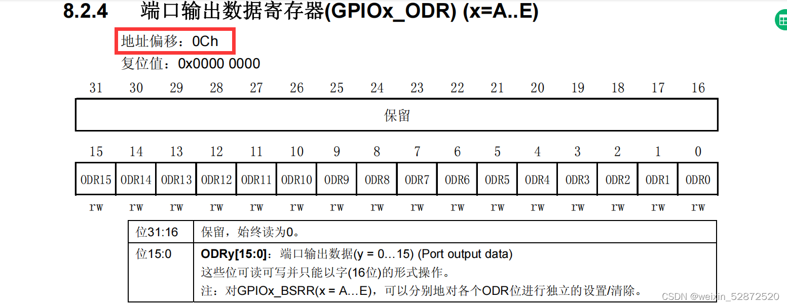 3、配置GPIOC13端口输出低电平(输出数据寄存器)。