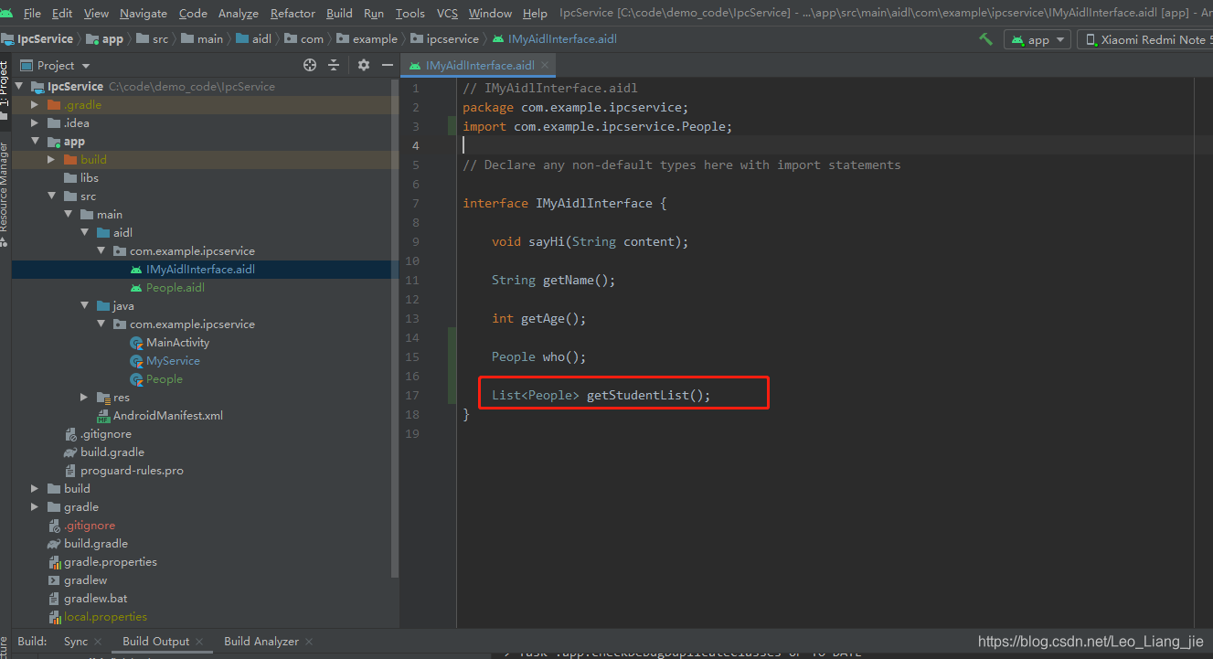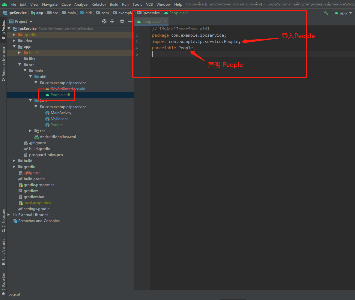 好了,先在Service端新建一个自定义People类,这个必须是实现 Parcelable接口的