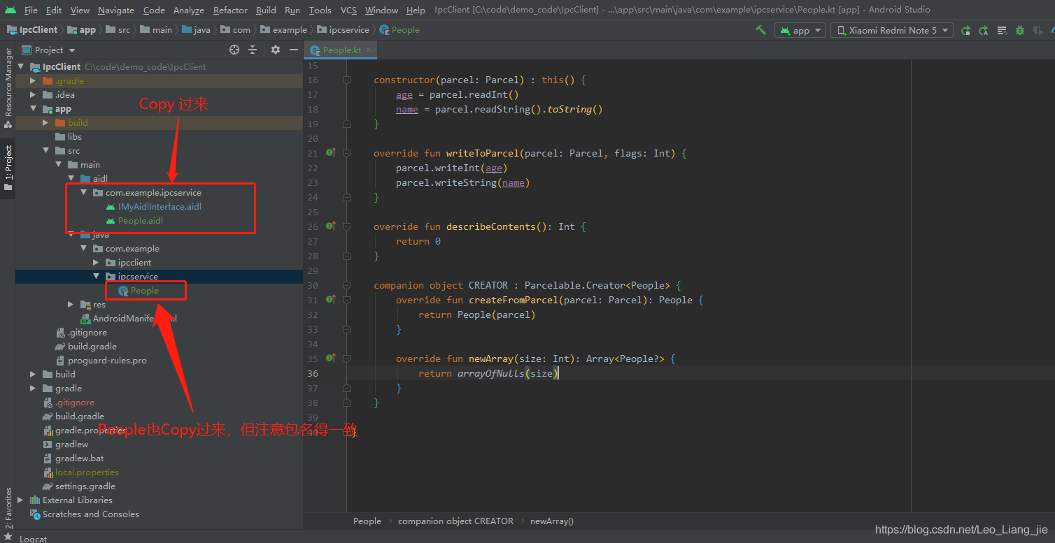 现在到了Client端更新一下接口,可以把Service端 aidl 目录,整个目录Copy过来
