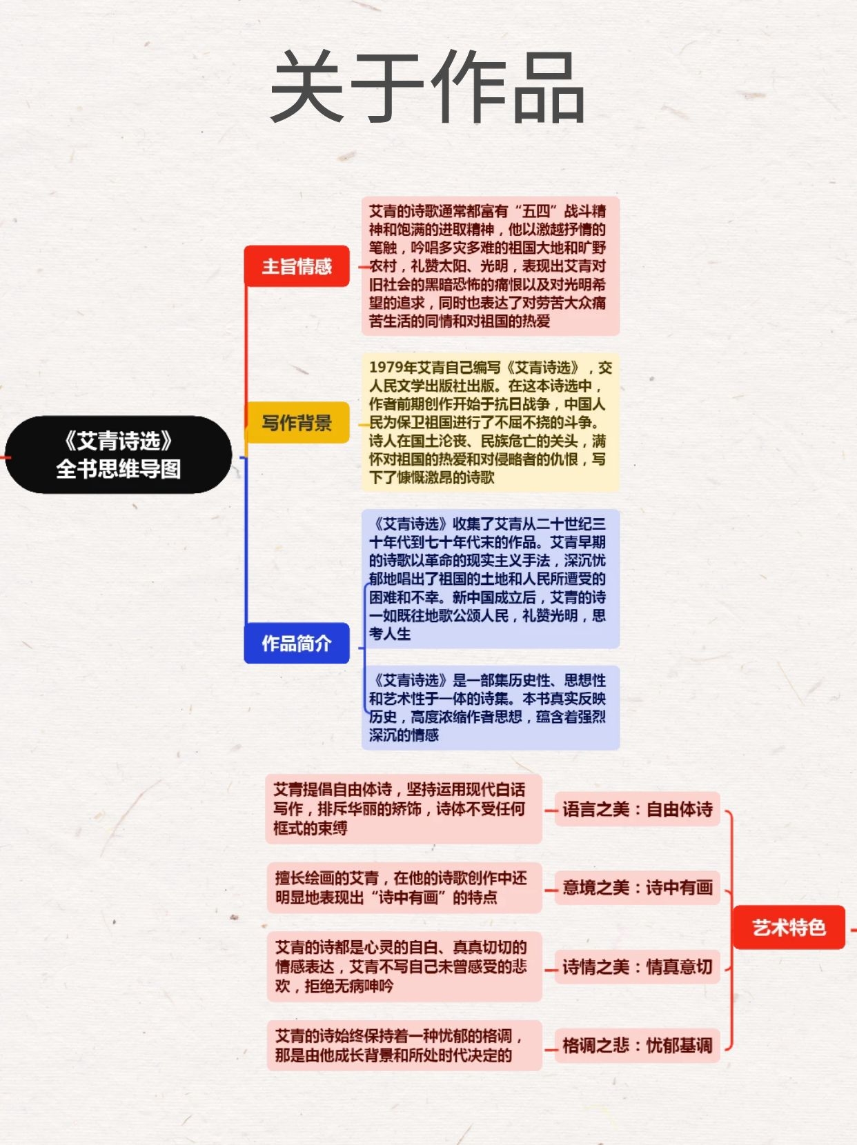 《艾青诗选》这本必读名著,九年级上册的配套教材,大家都有看过了吗?还没有阅读过的小伙伴们今日的读书笔记思维导图