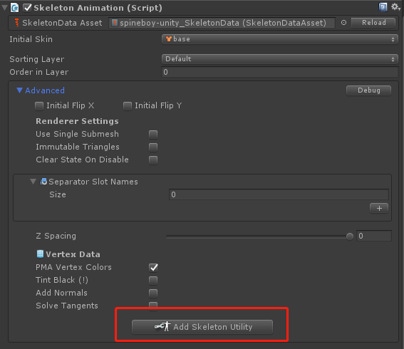 1.在skeleton Animaton下添加Skeleton Utility。点击添加。