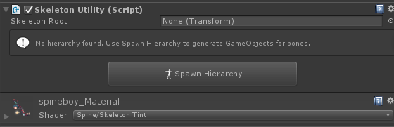 2.点击后会在该物体上添加一个skeleton Utility的脚本。点击Spawn Hierarchy。选择Follow all bones。