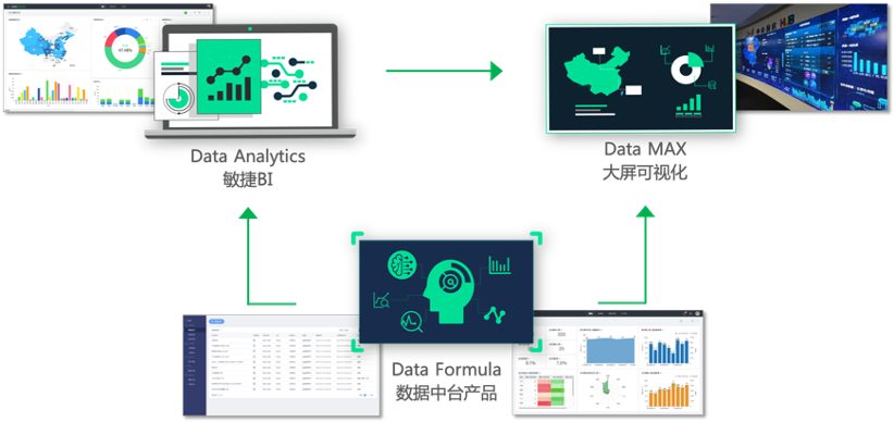 • Data Formula 是一款企业数据中台产品,可解决企业面临的数据孤岛、数据不一致、数据维护混乱等各类数据问题,可以根据企业特有的业务架构,构建起一套统一的、标签化的、API化的,并可持续更新的数据资产管理平台,从而为企业的前台业务部门提供决策的快速响应、精细化运营,以及应用支撑等多种要求,使企业能够真正做到自身能力与用户需求的持续无缝对接。