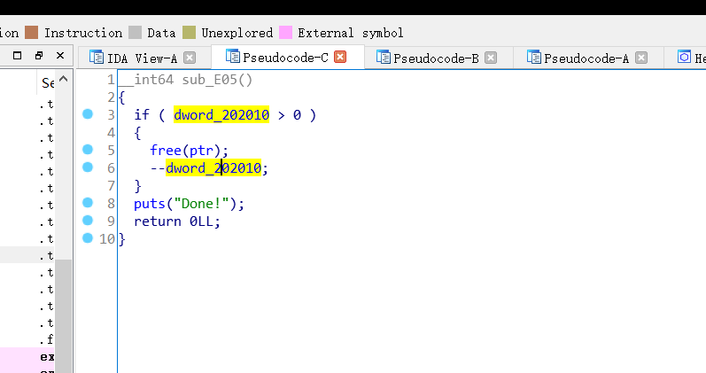 dword_202010只能free一次,且free之后指针没有置0