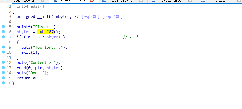 edit部分存在溢出 8个字节大小