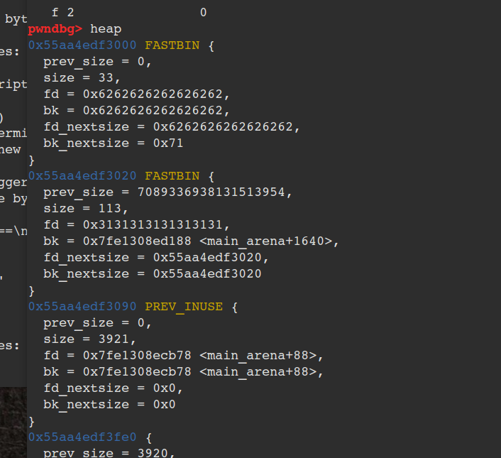 data = 'b'*24 + p32(0x0fe1)#修改chunk大小
