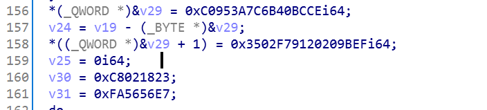 - 将输入的字符串使用key加密,加密后的字符保存在字符数组v18,共24位字符