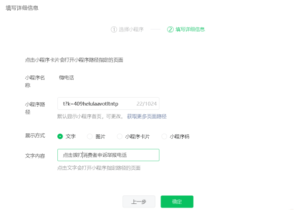 点击“下一步”,然后将“小程序路径”选框中的字母清除