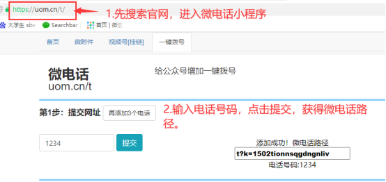 将电话填在框中,点击“提交”,得到一个微电话路径