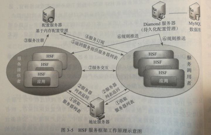 Diamond服务器:类似Zookeeper,在HSF框架中主要保存服务管控规则。