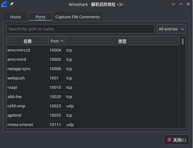 显示SNMP或DNS或ICMP的数据包:snmp || dns || icmp显示来源或目的IP地址为10.1.1.1的数据包:ip.addr == 10.1.1.1显示来源不为10.1.2.3 或者目的不为10.4.5.6的数据包:ip.src != 10.1.2.3 or ip.dst != 10.4.5.6显示来源不为10.1.2.3 并且目的不为10.4.5.6的数据包:ip.src != 10.1.2.3 and ip.dst != 10.4.5.6显示来源或目的UDP端口号为4569的数据包:udp.port == 4569显示目的TCP端口号为25的数据包:tcp.dstport == 25显示带有TCP标志的数据包:tcp.flats显示带有TCP SYN标志的数据包:tcp.flags.syn == 0x02
