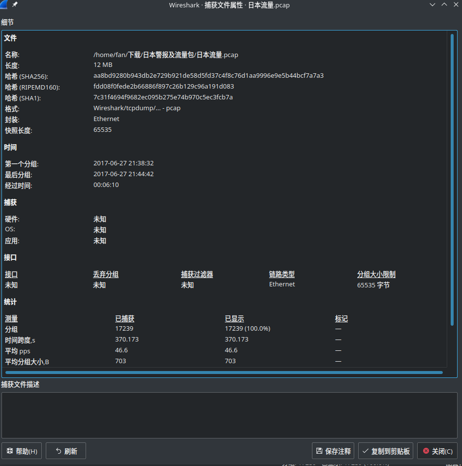 在属性里看到数据包的一些基本属性,如:大小,长度,时间