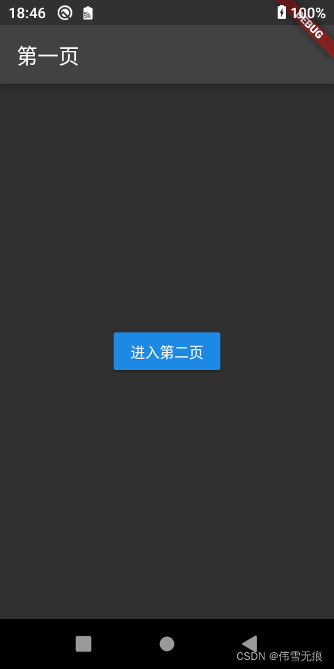 class FirstPage extends StatelessWidget{const FirstPage({Key? key}) : super(key: key);@overrideWidget build(BuildContext context) {return Scaffold(appBar: AppBar(title: Text('第一页'),),body: new Center(child: new RaisedButton(onPressed: (){//点击进入第二页Navigator.push(context, new MaterialPageRoute(builder: (context)=>new SecondPage()));},child: Text('进入第二页'),),),);}}class SecondPage extends StatelessWidget{const SecondPage({Key? key}) : super(key: key);@overrideWidget build(BuildContext context) {return new Scaffold(appBar: AppBar(title: Text('第二页'),),body: new Center(child: new RaisedButton(onPressed: () {//点击返回第一页Navigator.pop(context);},child: Text('返回') ,),),);}}