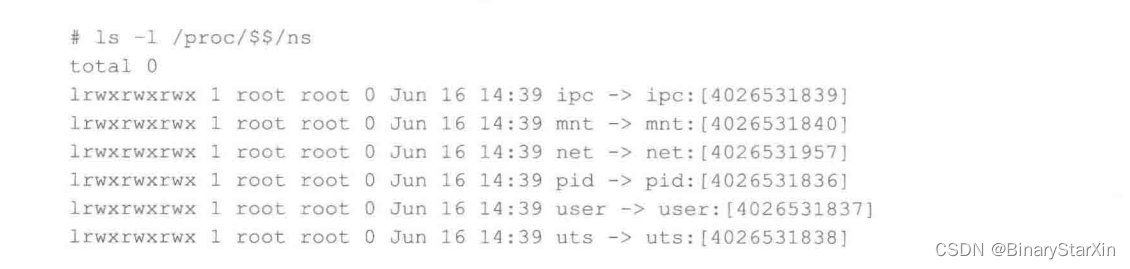 以上两个系统调用都是用来创建新的Namespace 的,而setns 则可以将进程放到已有的Namespace 里,问题是如何指定已有的Namespace ?答案在procf里。每个进程在procfs下都有一个目录,在那里面就有 Namespace相关的信息,如下