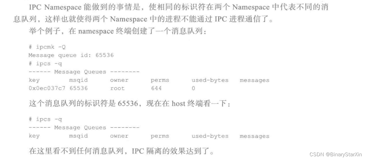 IPC是Inter-Process Communication的简写,也就是进程间通信。Linux提供了很多种讲程间通信的机制IPC Namespace 针对的是 SstemVIPC和 Poix 消息队列。这些IPC机制都会用到标识符,例如用标识符来区别不同的消息队列,然后两个进程通过标识符找到对应的消息队列进行通信等。