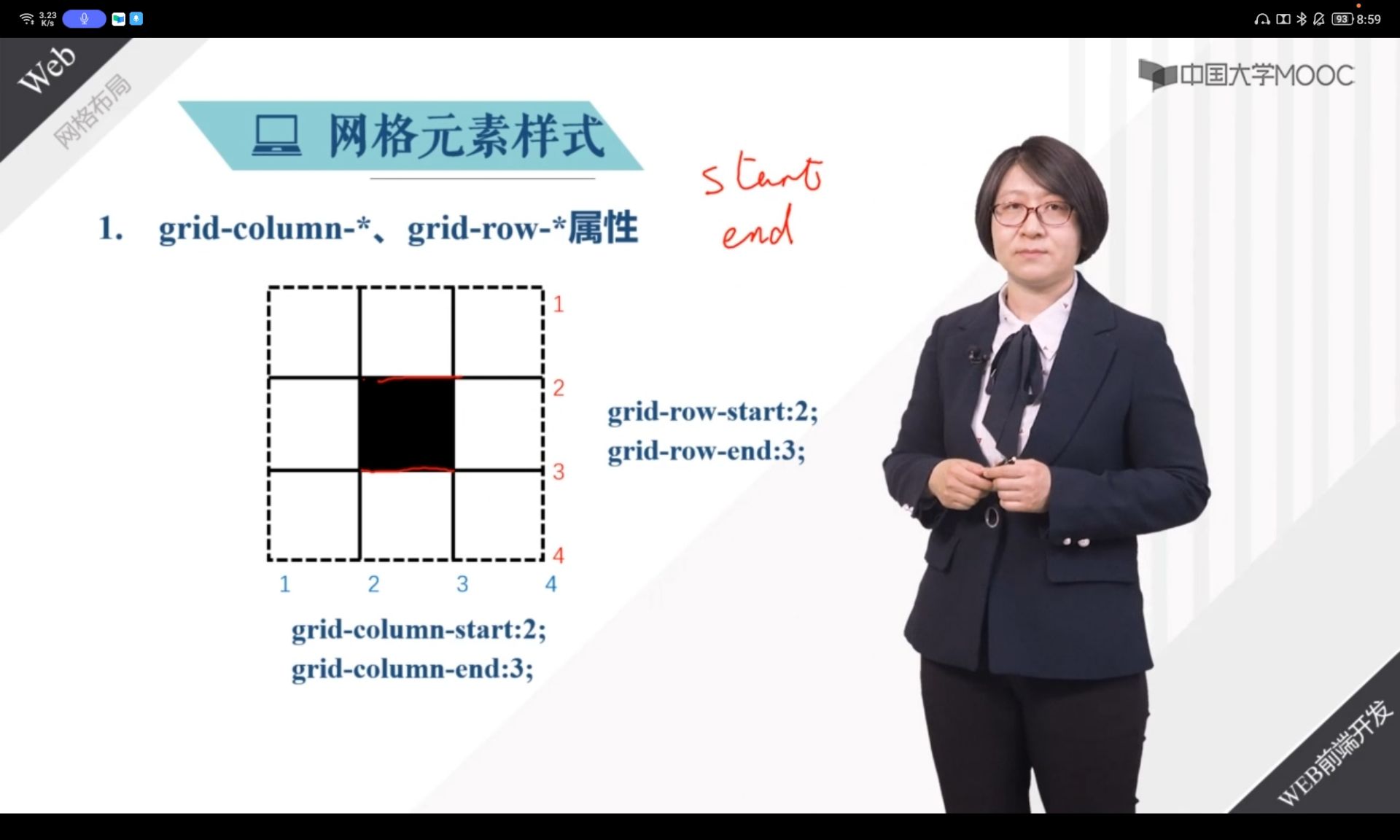 网格元素样式 grid-row-start/end:数字(以线为基准)