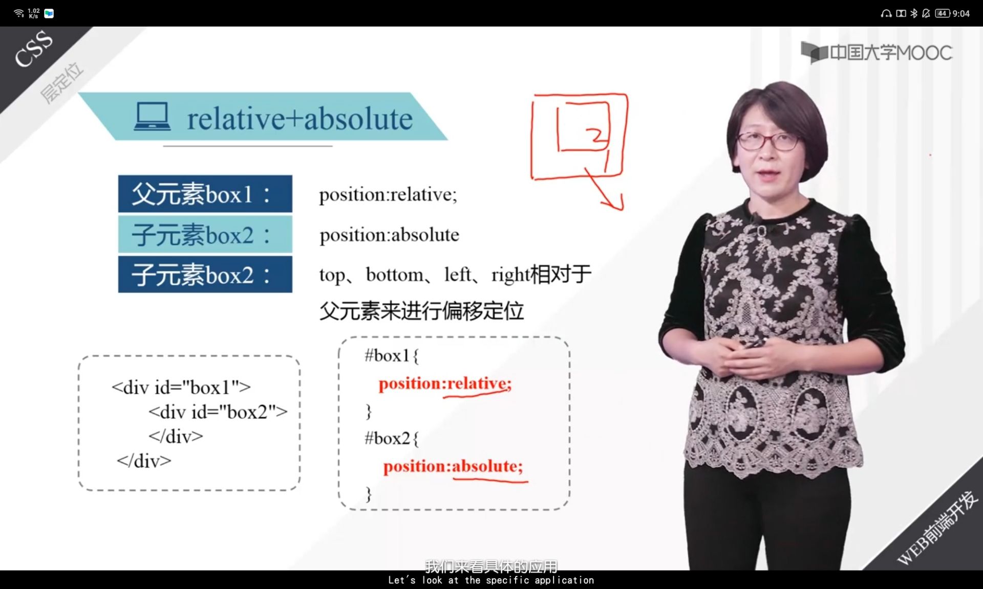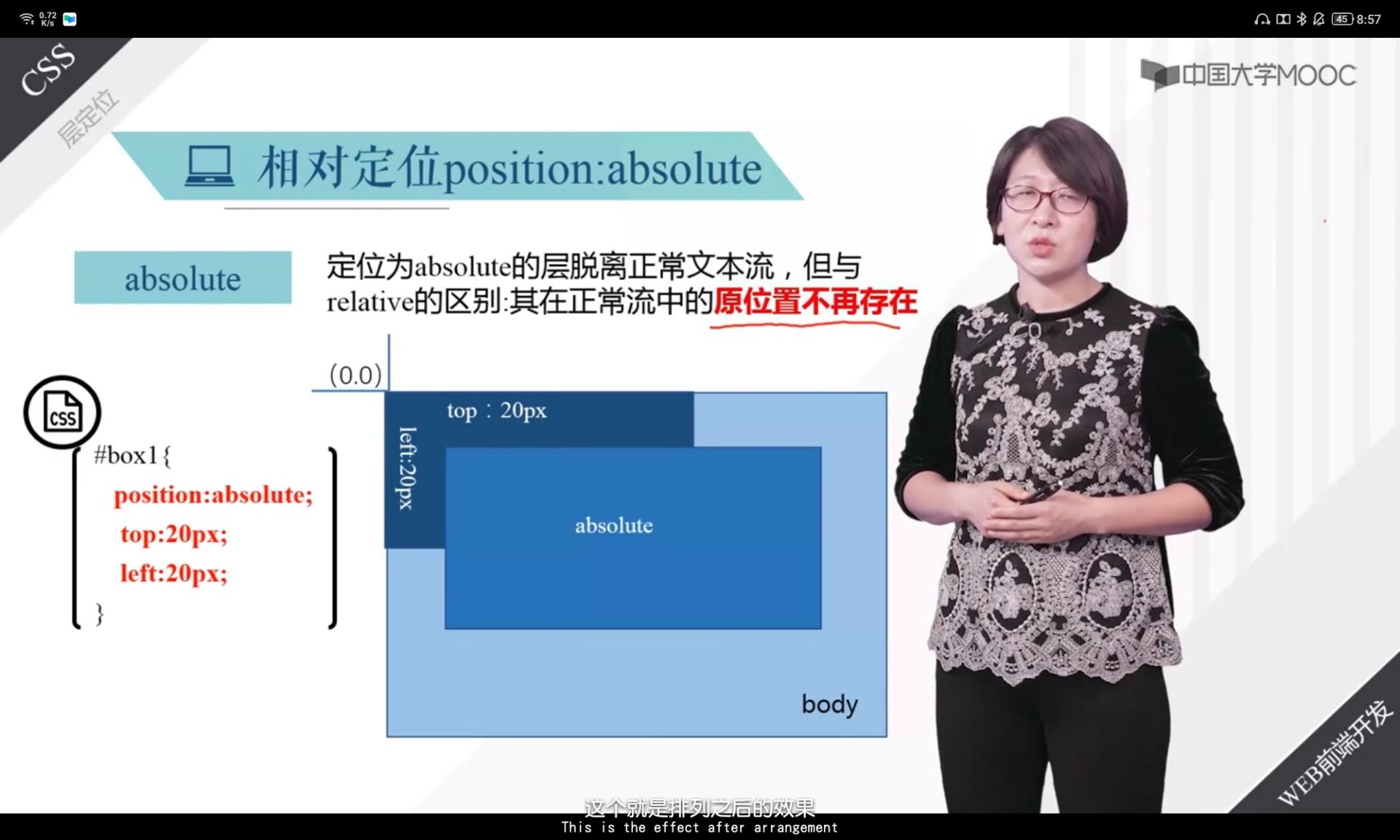 相对于static定位以外的第一个父元素进行定位,如果其父层中都未定义absolute或relative,则其相对于body进行定位