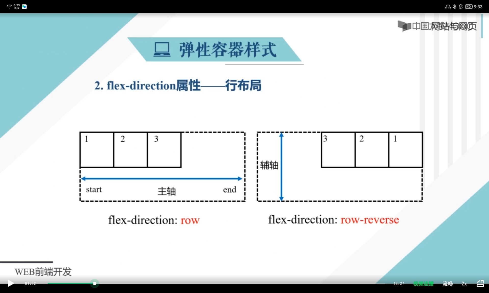 弹性容器样式 (定义弹性容器:display:flex;) flex-direction属性----行布局