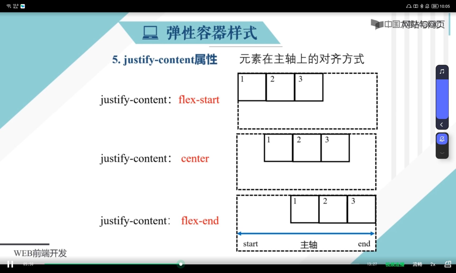justify-content属性(元素在主轴上的对齐方式)(以行为例) flex-start(左对齐)