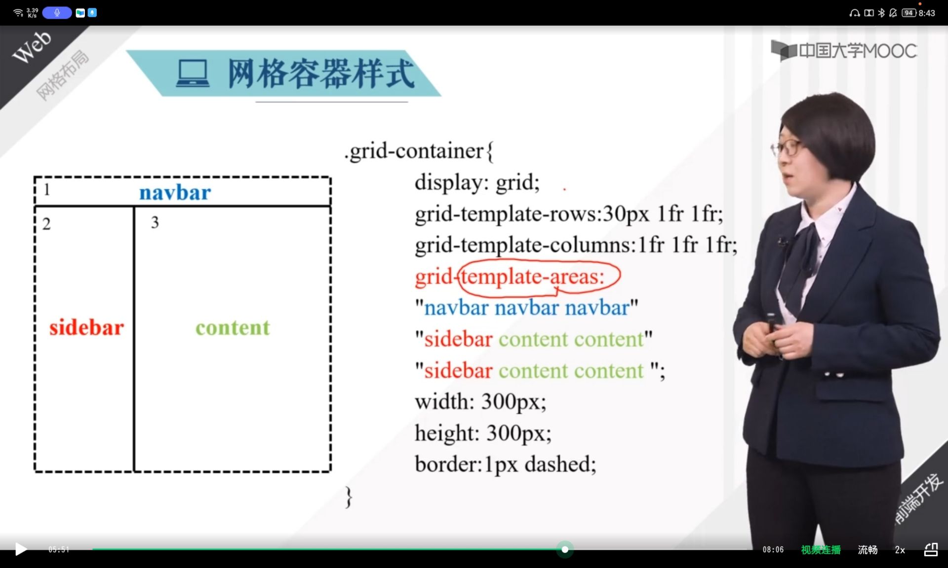 划分网格的行和列,取值:px / % / auto / fr / repeat()函数 grid-template-areas 命名单元格,相同名称的单元格被划分为一个区域 grid-gap grid-row-gap: 行间距