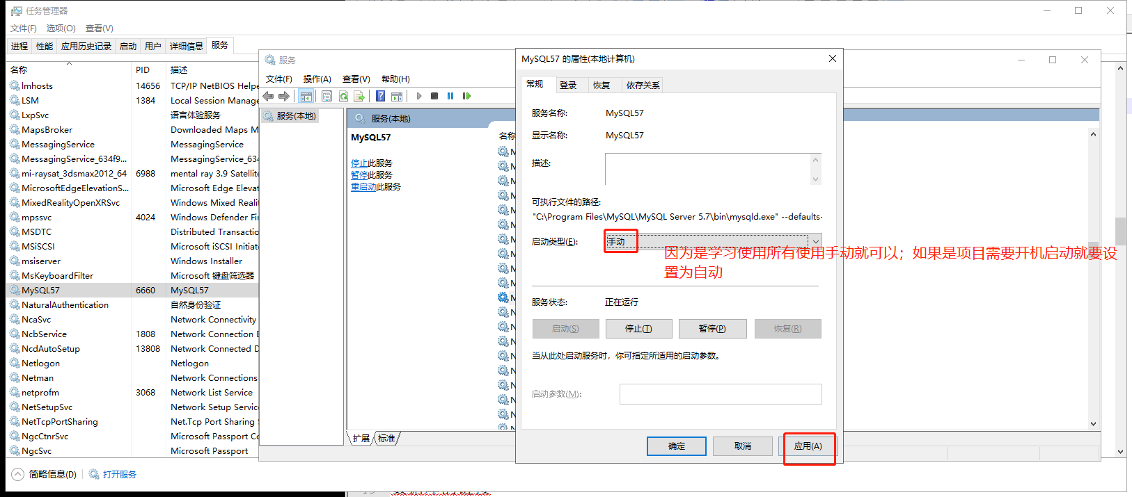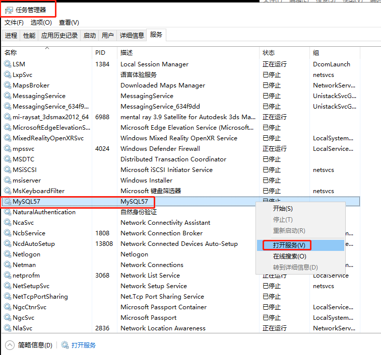设置服务启动类型:任务管理器-右键-打开服务-