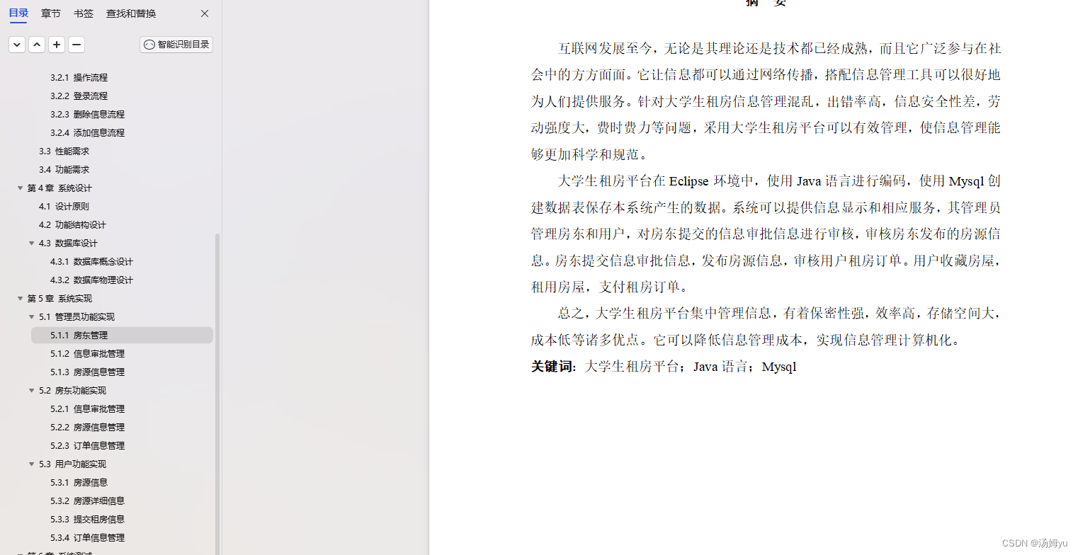 大学生租房平台在Eclipse环境中,使用Java语言进行编码,使用Mysql创建数据表保存本系统产生的数据。系统可以提供信息显示和相应服务,其管理员管理房东和用户,对房东提交的信息审批信息进行审核,审核房东发布的房源信息。房东提交信息审批信息,发布房源信息,审核用户租房订单。用户收藏房屋,租用房屋,支付租房订单。