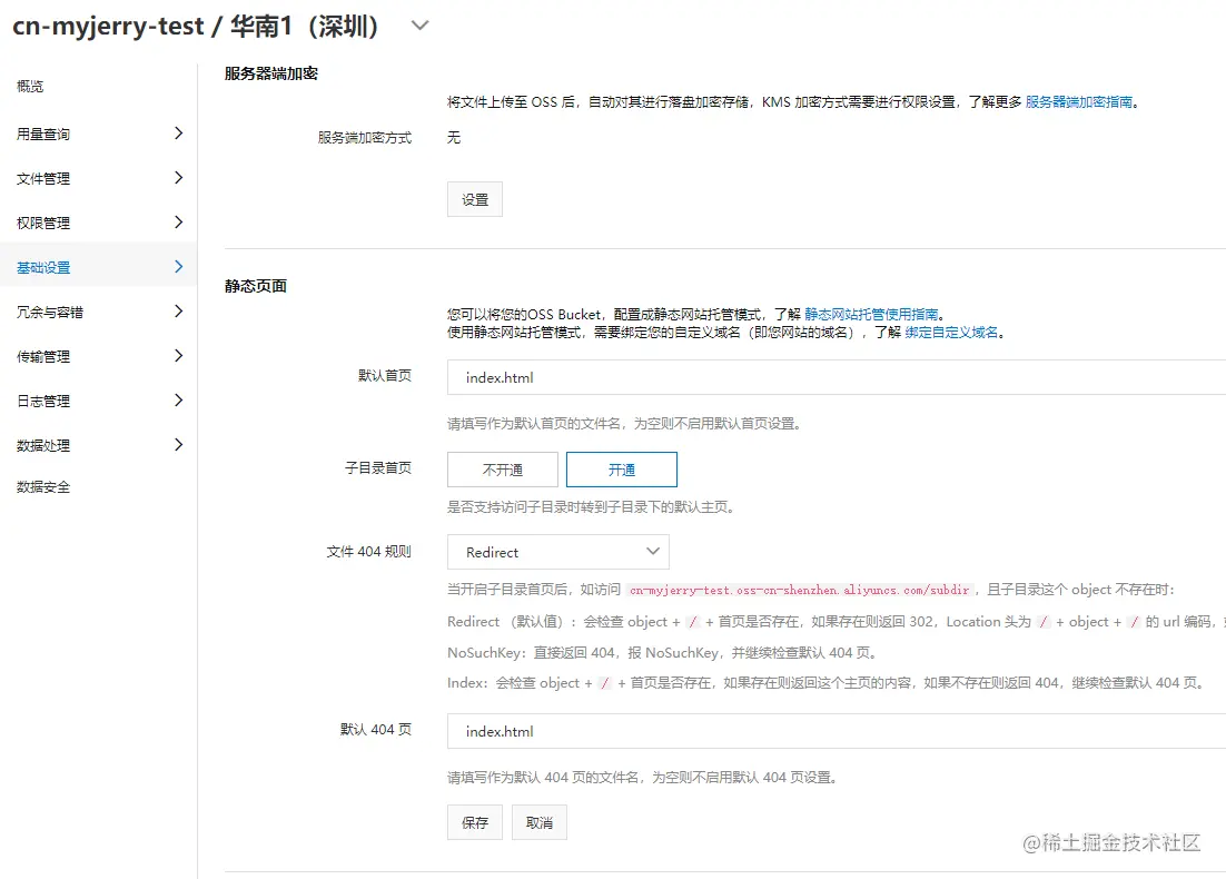 存储桶创建后,默认市不具备惊天网站托管的功能,因此需要所一些配置。配置如下: