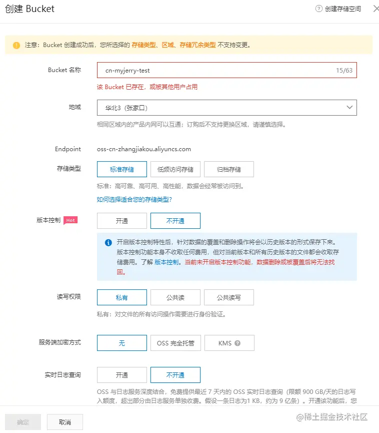 每个存储桶(bucket)可以当作一个单独的网盘使用,但存储桶名称必须全局唯一,不能重名。创建如下: