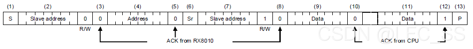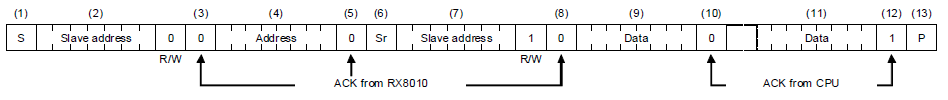 7)CPU 传输RX-8010SJ 的从地址,用R/W 位设定读模式