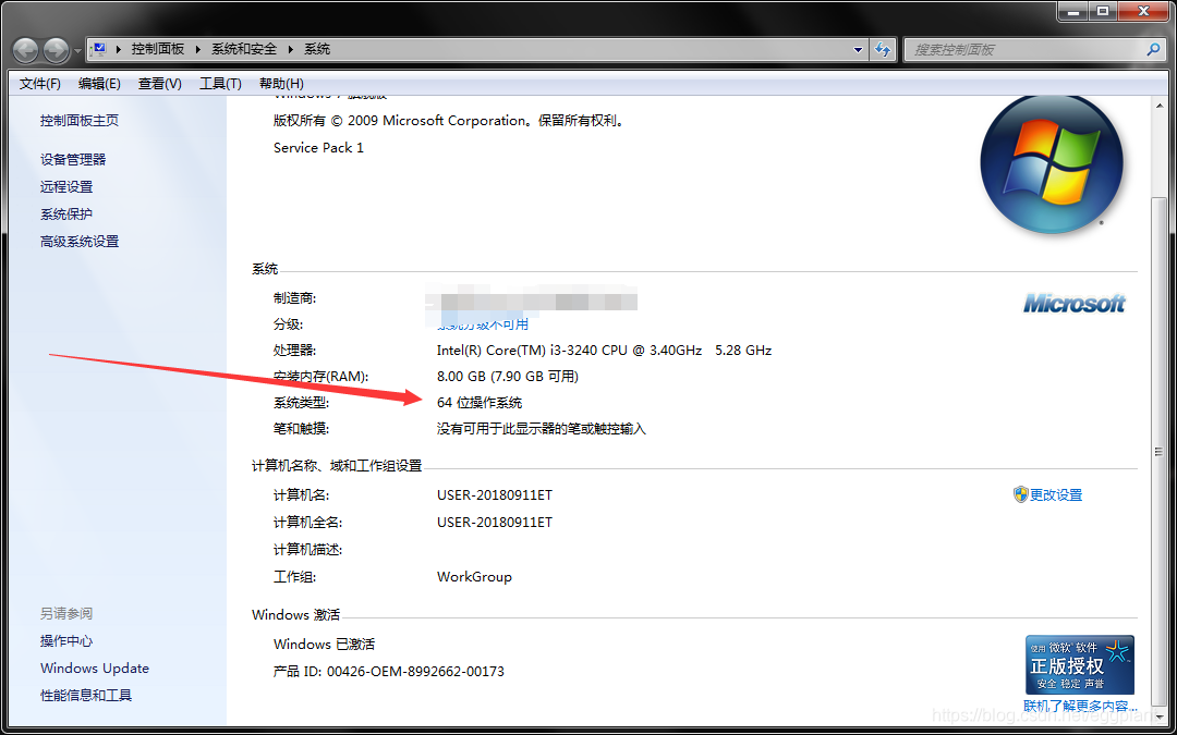 (如何查看自己电脑操作系统多少位的,右击我的电脑点击属性,会有如下页面)