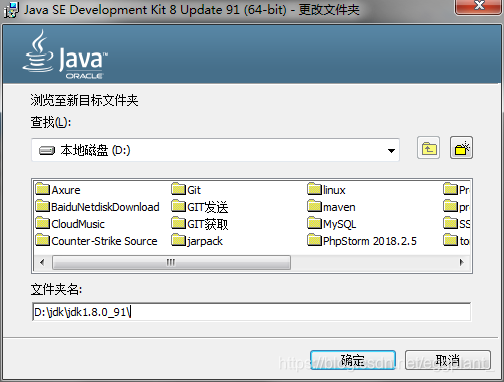 安装jdk时候它会有两个安装提示,第一个是安装jdk第二个是安装jre,我们找一个磁盘新建目录jdk,我在d盘新建的名为jdk的文件夹,