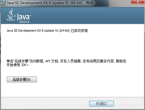 安装完成,直接点关闭。这样jdk并没有安装完成。配置环境变量这样java程序才能运行。