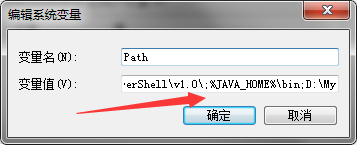 (注意原来Path的变量值末尾有没有;号,如果没有,先输入;号再输入上面的代码