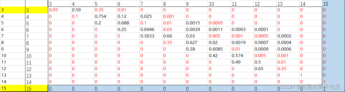 - 设计的转移矩阵是上三角矩阵,否则不能这么算。。。。